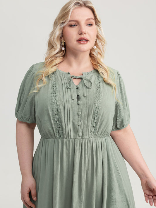 Lace Trim Drawstring Neckline Plain Midi Dress